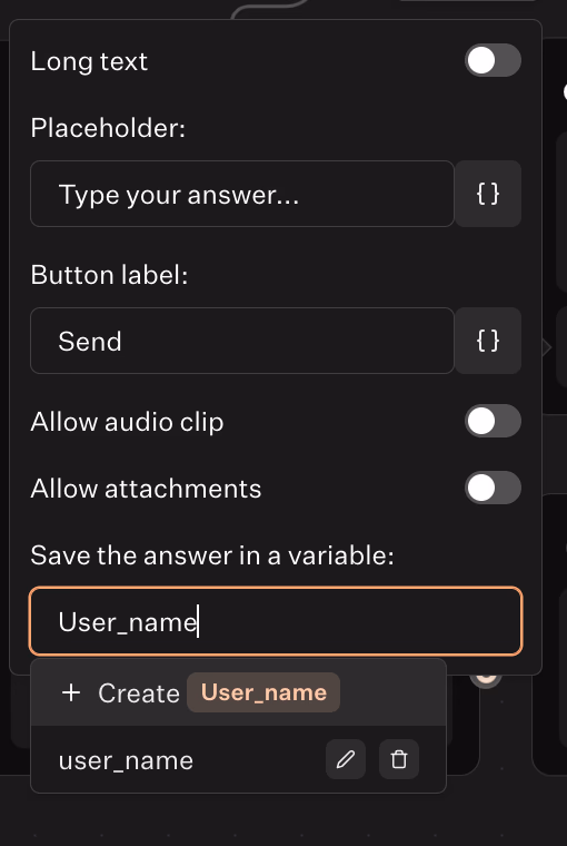 user_name - Connect it to the next block.